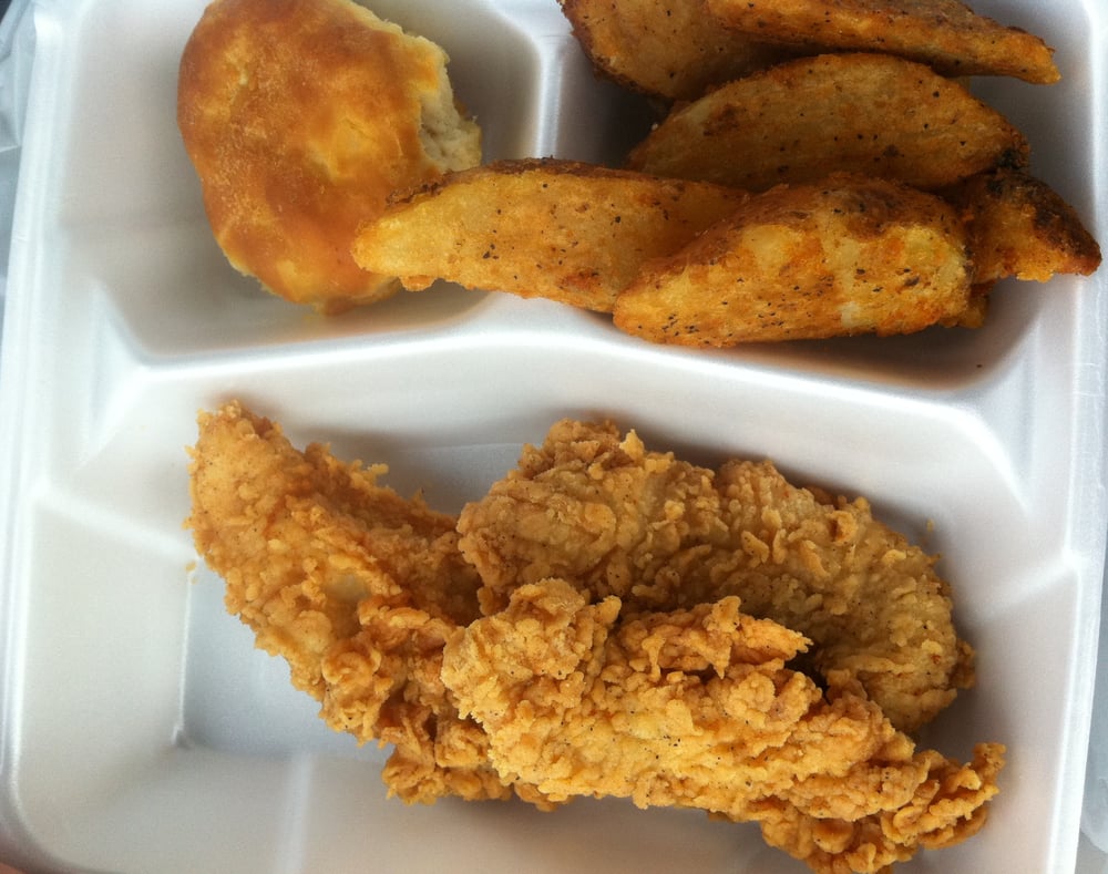 Meal includes 12 Breast Strips, 3 Large Sides, 6 Biscuits and choice of dipping sauces.