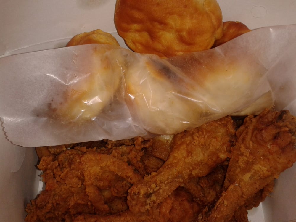 Meal includes 2 Thighs, 2 Legs, 2 Breasts, & 2 Wings, 2 Large Sides and 4 Biscuits.